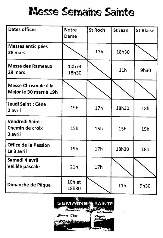 HORAIRES DES MESSES ORDINAIRES